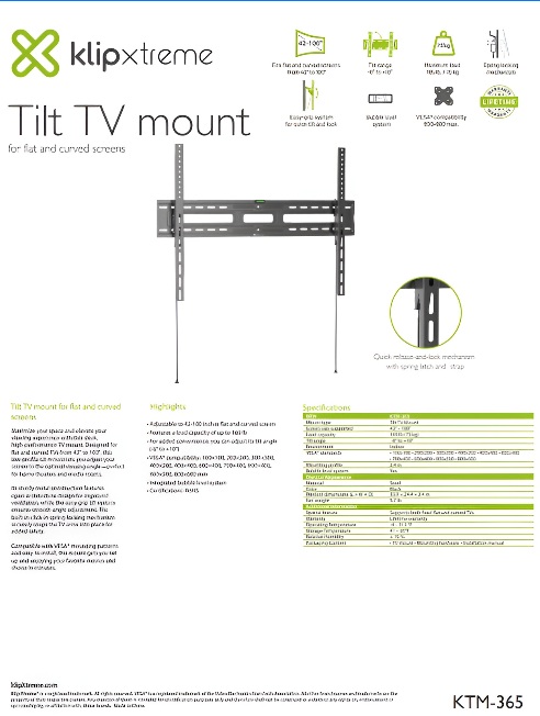 Klip Xtreme - ktm-365 - Soporte para TV - Inclinable - 42-100 pulgadas