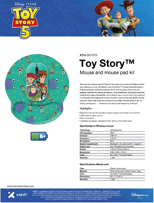 Xtech - xtm-dkt5ts - Kit de ratón y alfombrilla, Inalámbrico, Toy Story